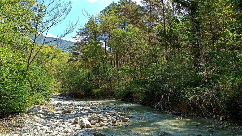 La randonnée commence dans la garrigue en suivant le GR91 pour remonter la rivière. Cela permet d’avoir de belles vues sur la rivière du haut et sur la vallée. Pour redescendre vers la rivière et pique-niquer au bord.