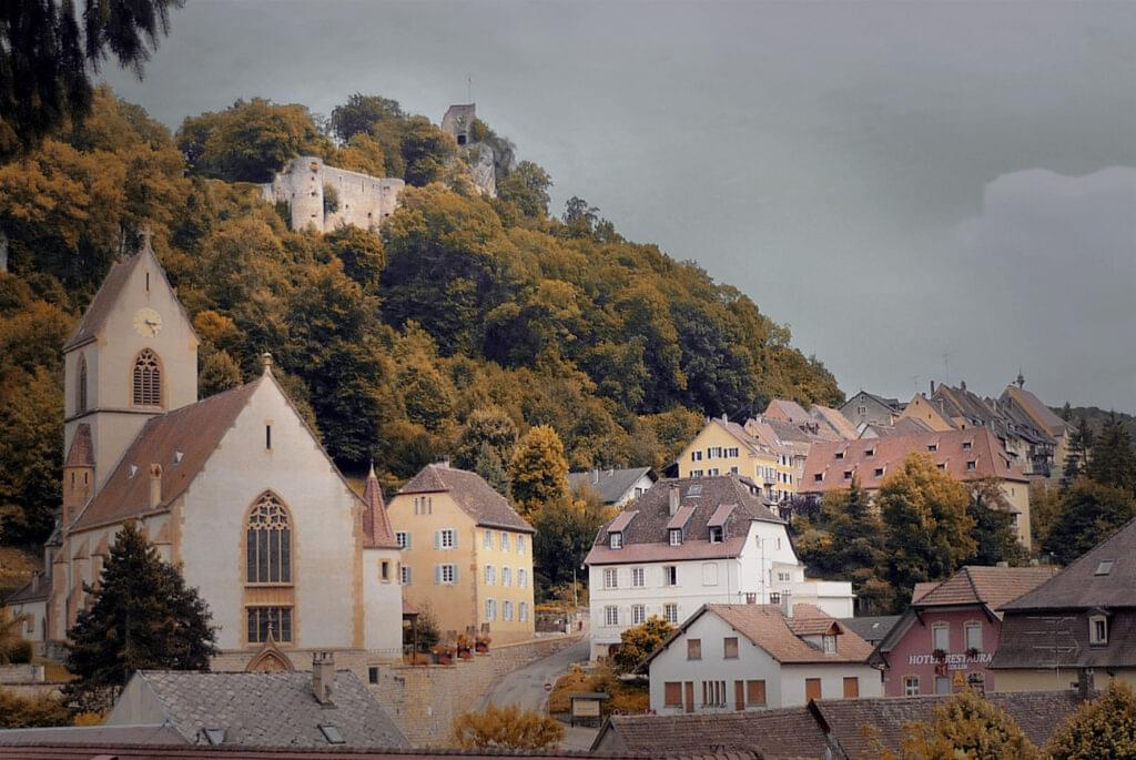 Ferrette est une petite cité historique située tout au sud de l’Alsace, à quelques encablures de la Suisse. Le site est très pittoresque : lovée au pied du Jura alsacien, l’ancienne capitale des comtes de Ferrette est dominée par les ruines de son château médiéval.