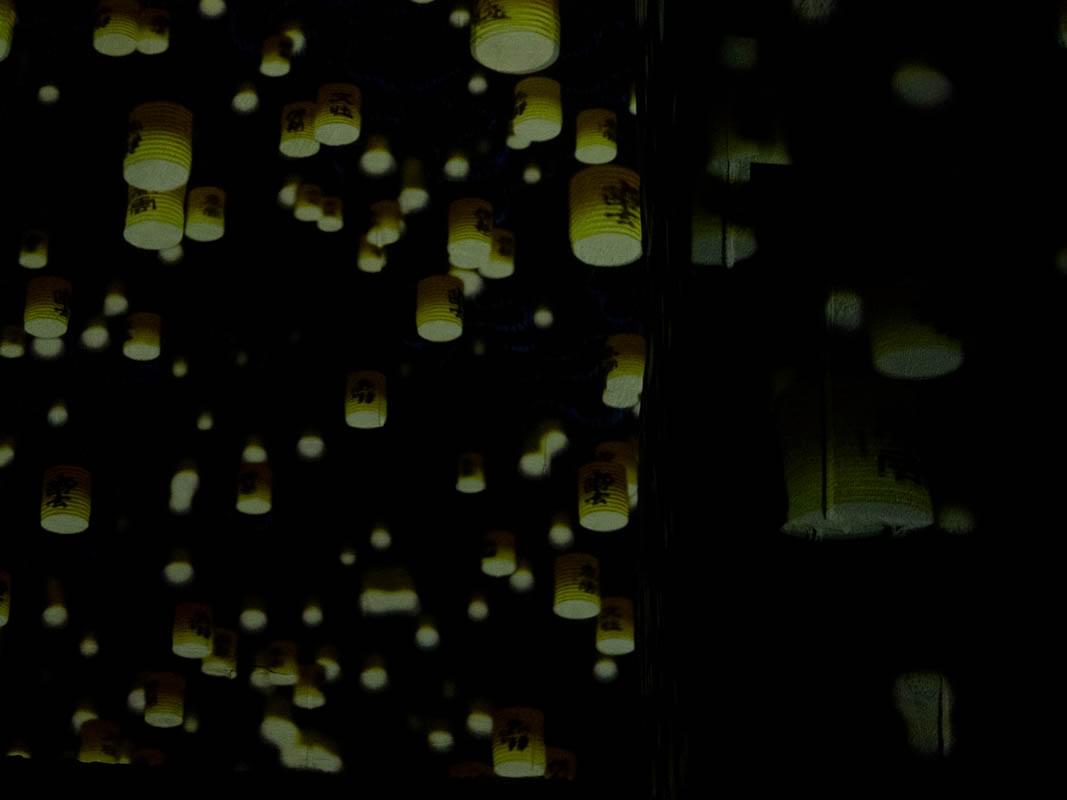 La projection ne dure que quinze minutes, mais petits et grands sont captivés : les samouraïs jaillissent des murs, les geishas font coulisser des paravents, des animaux marins traversent l’immense cavité, une vague nous submerge, des lampions s’allument : nous venons de vivre une véritable expérience.