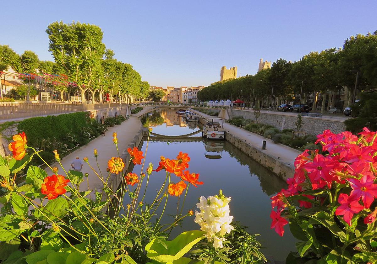 Départ du pont de la Liberté d’où l’on en profite pour admirer de loin le pont des Marchands qui enjambe le canal. Rare pont habité de France, on a déjà l’impression d’être ailleurs en l’apercevant. Puis, la balade débute sur la rive droite, le long du cours Mirabeau, à l’ombre des platanes ou en s’approchant des barques bercées par le clapotis de l’eau. Après avoir dépassé le pont des Marchands, on continue jusqu’au quai Dillon. Ici, la randonnée et les abords du canal deviennent fleuris et pour jouir du moment plus longtemps, on déguste une glace achetée en face de l’office de tourisme avant de rebrousser chemin mais par la rive gauche cette fois. La fraîcheur de la Promenade des Barques nous fait de l’œil et c’est ici qu’un peu de l’âme et de l’histoire de Narbonne se révèlent à nous. Et quoi de mieux que de compléter cette randonnée par une récompense en entrant aux Halles de Narbonne face à nous pour partir à la découverte des producteurs locaux !?