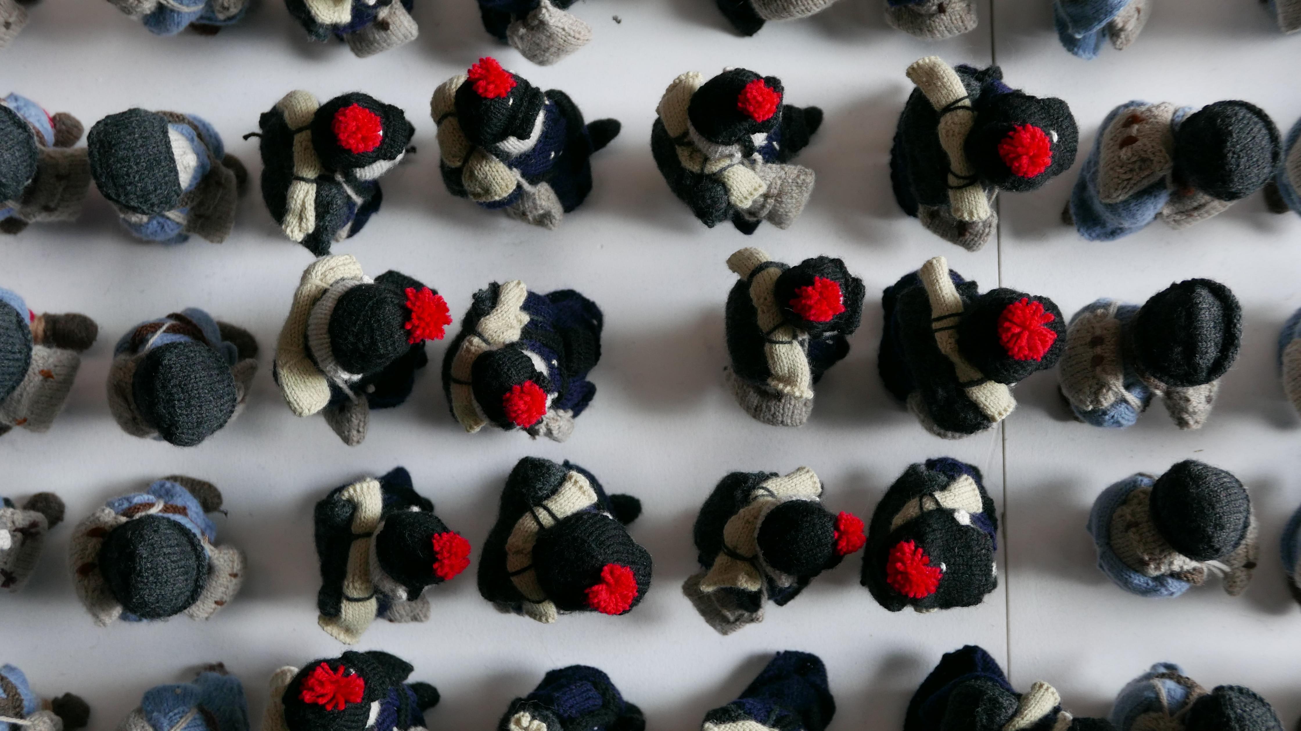 Le projet est complètement fou, car l’artiste n’a pas tricoté tous ces soldats elle-même, elle a reçu l’aide de 499 tricoteuses et 1 tricoteur du monde entier ! C’est là que l’installation prend tout son sens, puisque les soldats de la Première Guerre mondiale venaient eux aussi du monde entier. Un projet comme ça, c’est une forme d’utopie qui parle à tout le monde, une manière de dire que l’art dépasse les frontières, une manière de célébrer la paix.