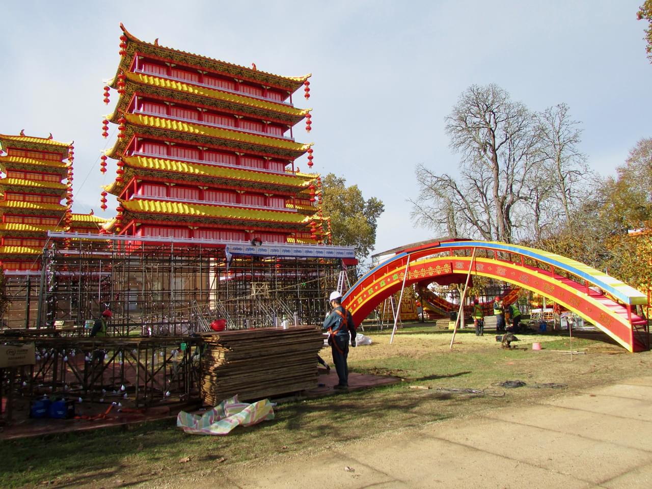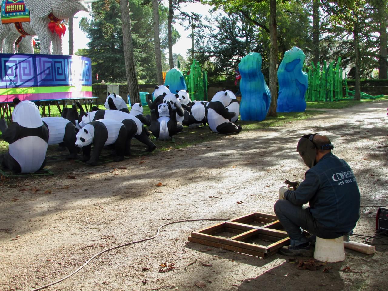Bref, cet automne, 19 containers, 120 tonnes de métal, 40 000 m² de soie, 60 000 ampoules à LED, 20 000 pièce de céramique sont arrivés à Gaillac. 80 artisans chinois (métalliers, peintres, couturiers …) aidés des équipes municipales travaillent d’arrache-pied depuis début octobre pour construire, assembler les pièces et installer un décor de rêve.
