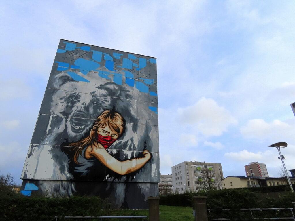 Lorsqu’on arrive dans cette commune de la région Grand-Est largement détruite au cours de la seconde guerre mondiale, on ne s’attend pas du tout à voir du Street Art investir les façades des bâtiments publics et pourtant ! Saint-Dié-des-Vosges nous convie en effet à un joli parcours aux quatre coins de la ville qui nous la fait voir d’un autre œil et nous invite à découvrir plusieurs artistes bien implantés sur la scène internationale. Collèges et lycées, HLM, parcs ou autres lieux de vie accueillent donc dorénavant de ces traces d’art contemporain. Et ce circuit continue de croître.