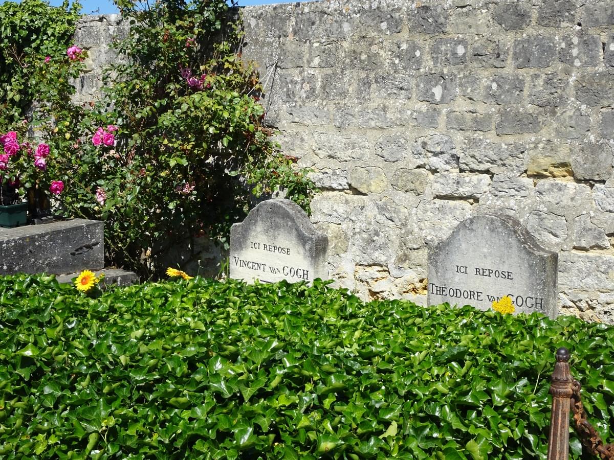 En continuant un peu plus haut, en direction des champs de blé, vous tomberez sur le cimetière d’Auvers-sur-Oise où est enterré Vincent Van Gogh et son frère Théo, mais aussi d’autres artistes comme le peintre Emile Boggio. Vous reconnaitrez facilement les tombes de Vincent et de son frère bien-aimé : elles sont recouvertes de lierre et fleuries de tournesol pour symboliser la série de tableaux des tournesols peinte en 1887.