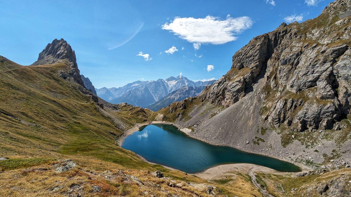 Cette magnifique randonnée de 14 kilomètres et 920 mètres de dénivelé part du lieu-dit Le Pont de L’Alpe sur la route du Col du Lautaret. Elle est classée difficile par son dénivelé mais surtout le passage d’une cheminée avec un peu d’escalade.