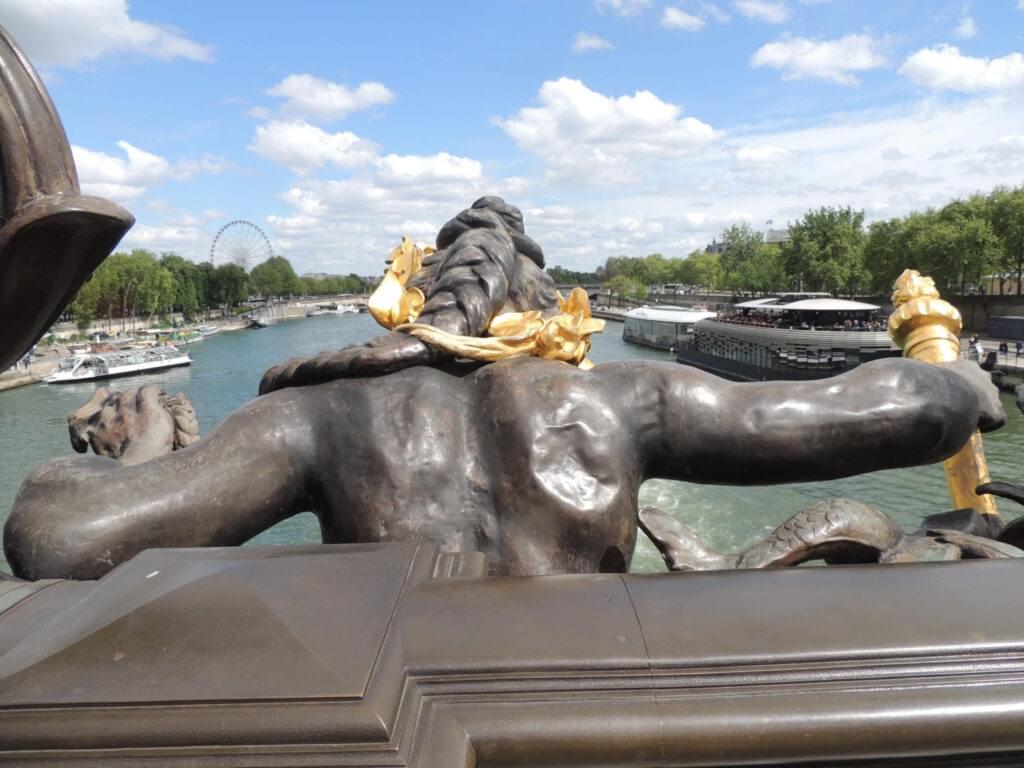 C’est avec l’esprit resté encore un peu dans ces contrées lointaines qu’il faut rejoindre à nouveau les quais. En direction cette fois du Pont Alexandre III pour se poser tout simplement et contempler. Regarder la Seine, les bateaux qui passent, et admirer ce symbole de fraternité entre la France et la Russie, dont la première pierre fut posée par le Tsar Nicolas II, l’impératrice Alexandra Fedorovna et le président Félix Faure le 7 octobre 1896.